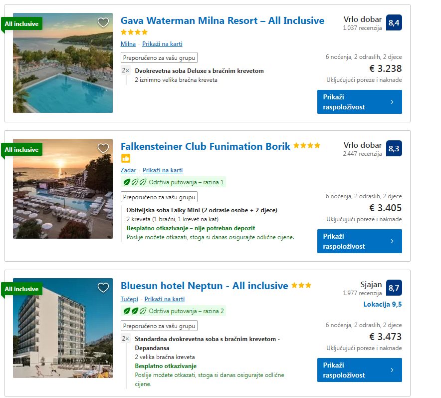 Hotelscombined tražilica trenutno nudi opcije pronalaženja najpovoljnijeg smještaja na Jadranu za ljetovanje. Ako još uvijek tražite smještaj predlažemo da pogledate skrivene ponude sa popustima preko ovog linka – cijene ljetovanja na Jadranu.